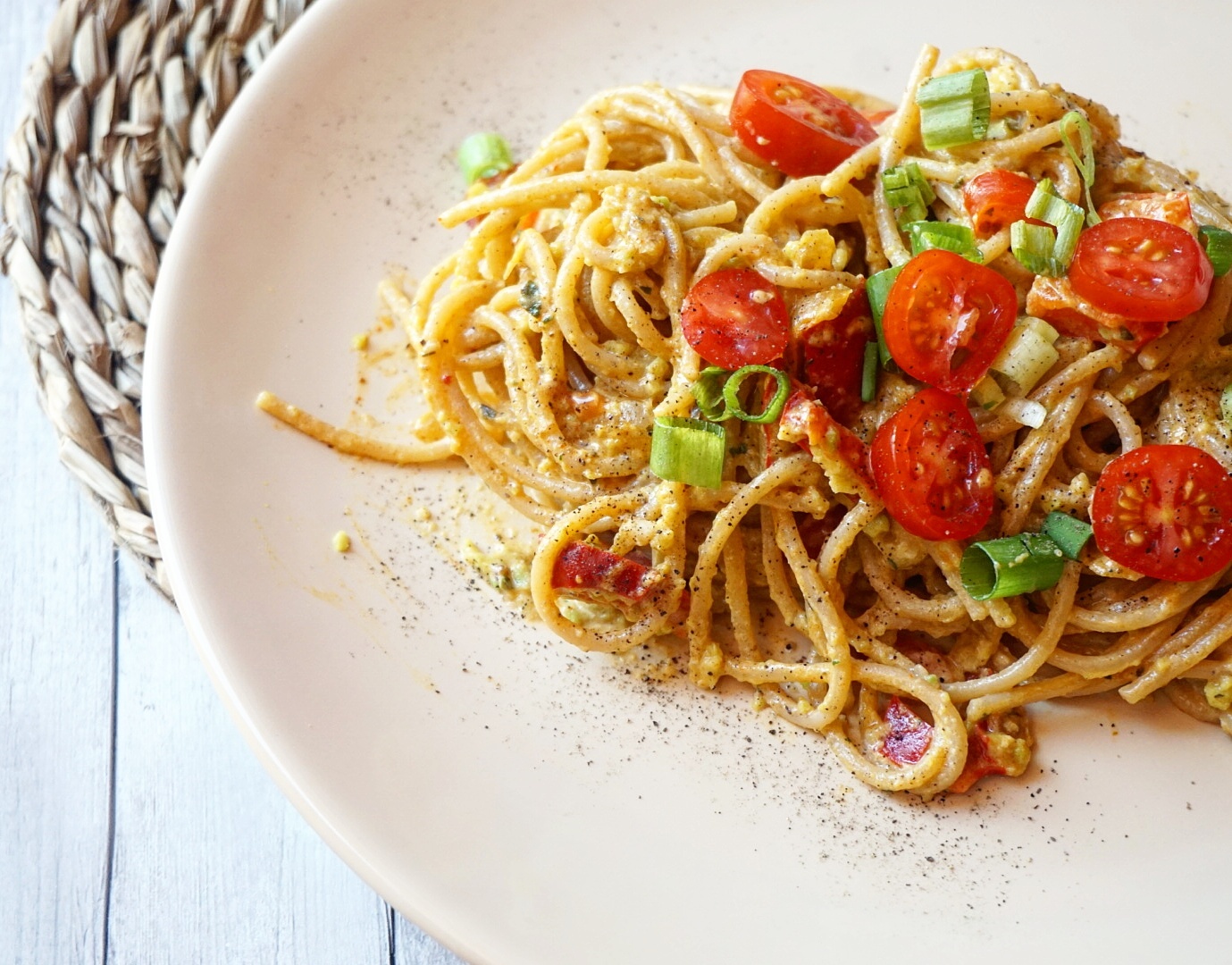 Pełnoziarniste spaghetti z pastą z awokado
